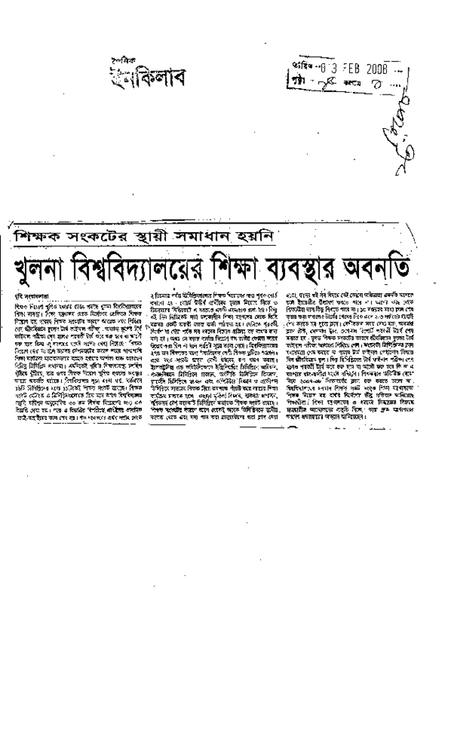 খুলনা বিশ্ববিদ্যালয়ের শিক্ষা ব্যবস্থার অবনতি Published on Newspaper দৈনিক ইনকিলাব Category General Education General Education Higher Education Public Download