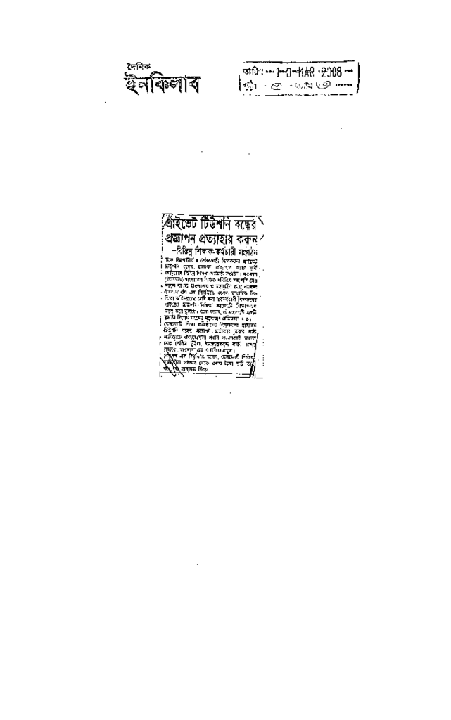 প্রাইভেট টিউশনি বন্ধের প্রজ্ঞাপন প্রত্যাহার করুন