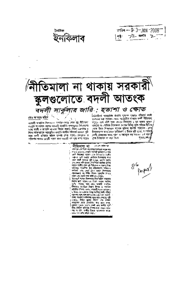 নীতিমালা না থাকায় সরকারী স্কুলগুলোতে বদলী আতংক