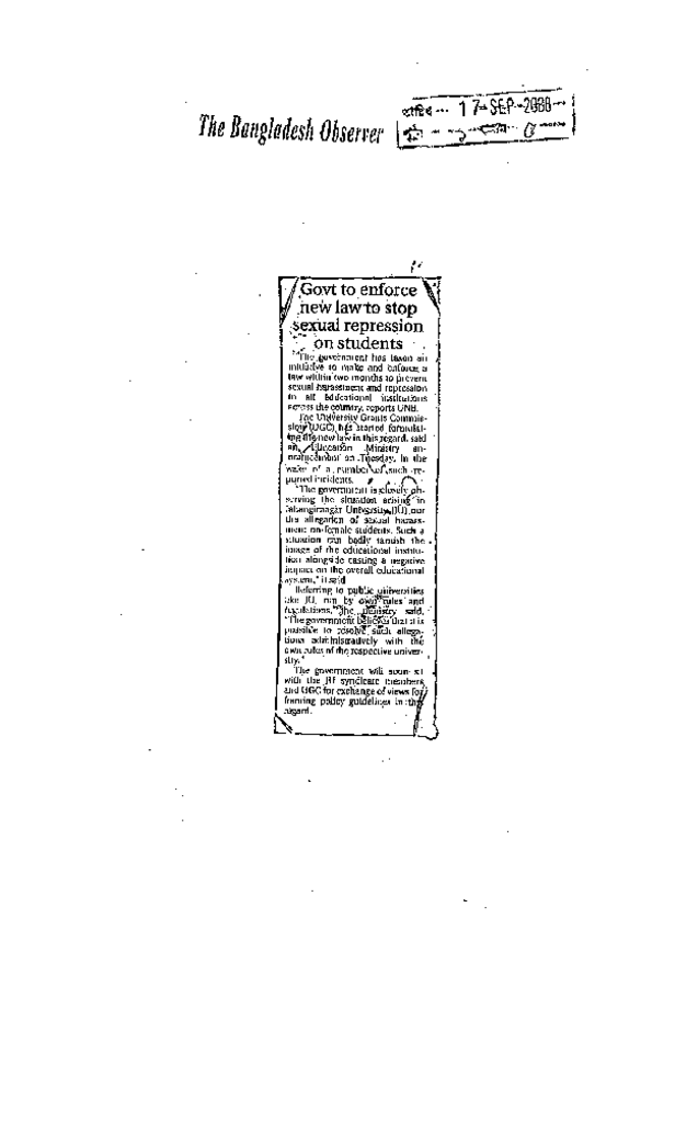 Govt to enforce new law tp stop sexual repression on students Published on Newspaper The Bangladesh Observer Category Others Download