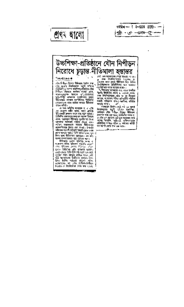 উচ্চশিক্ষা-প্রতিষ্ঠানে যৌন নিপীড়ন নিরোধে চূড়ান্ত নীতিমালা হস্তান্তর Published on Newspaper দৈনিক প্রথম আলো Category Others Download