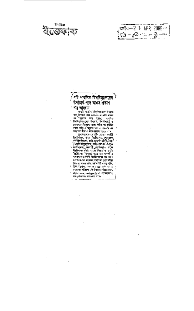 ৭টি পাবলিক বিশ্ববিদ্যালয়ের উপাচার্য পদে আগ্রহ প্রকাশ পত্র আহবান Published on Newspaper দৈনিক ইত্তেফাক Category Others Download