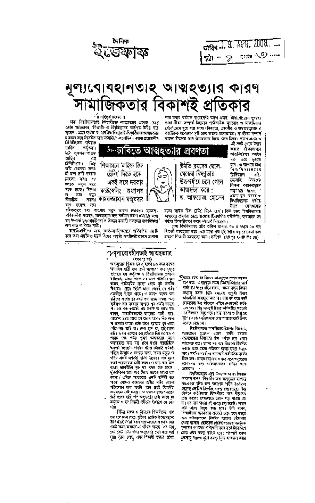 মূল্যবোধহীনতাহ আত্মহত্যার কারণ সামাজিকতার বিকাশই প্রতিকার Published on Newspaper দৈনিক ইত্তেফাক Category Others Download