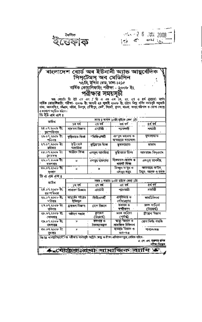 পরীক্ষার সময়সূচি Published on Newspaper দৈনিক ইত্তেফাক Category Professional Education Professional Education Others Download