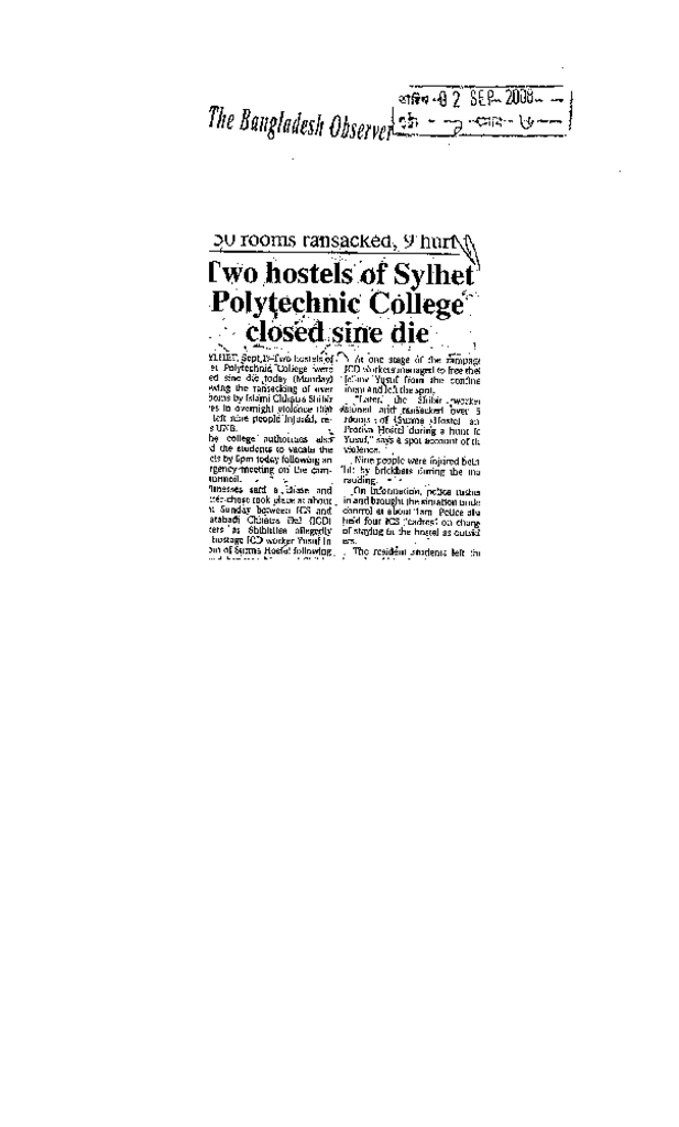 Two hostels of sylhet polytechnic college closed sine die Published on Newspaper The Bangladesh Observer Category Others Download