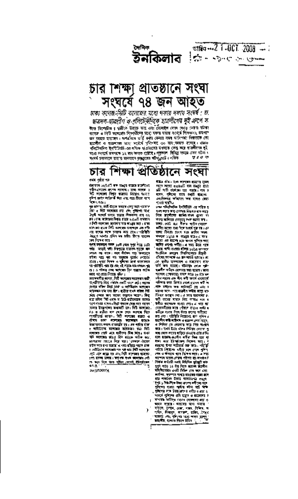 চার শিক্ষা প্রতিষ্ঠানে সংঘাত সংঘর্ষে ৭৪ জন আহত Published on Newspaper দৈনিক ইনকিলাব Category Student Politics Download