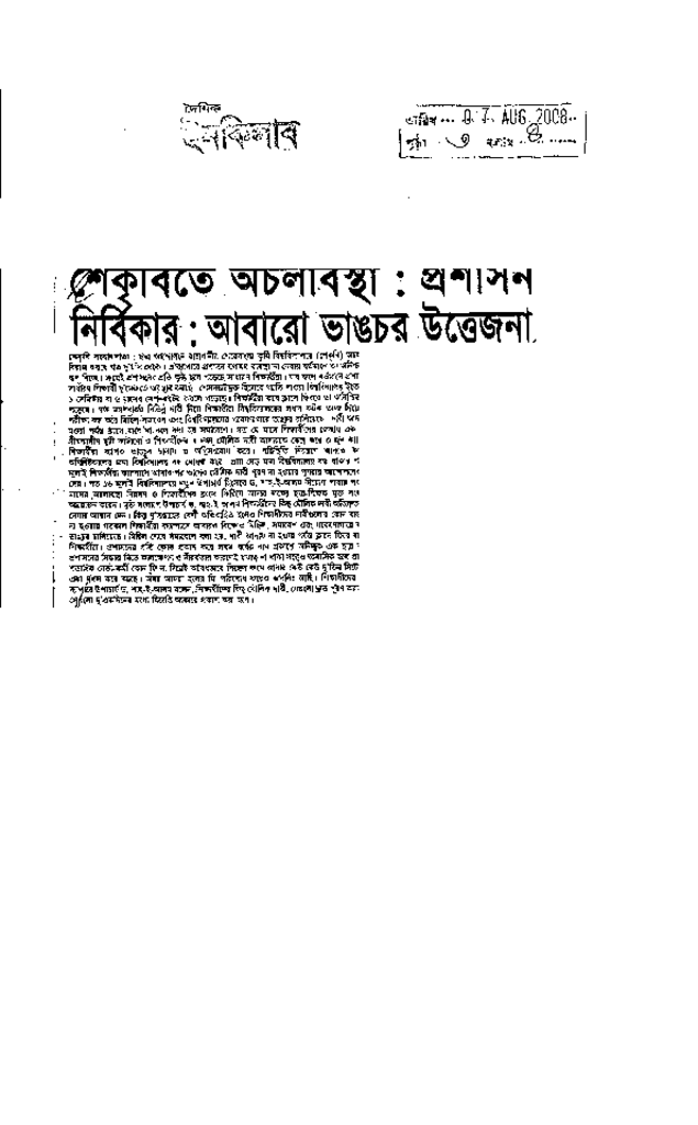 শেকৃবিতে অচলাবস্থাঃ প্রশাসন নির্বিকার, আবারো ভাঙচুর উত্তেজনা Published on Newspaper দৈনিক ইনকিলাব Category Student Politics Download