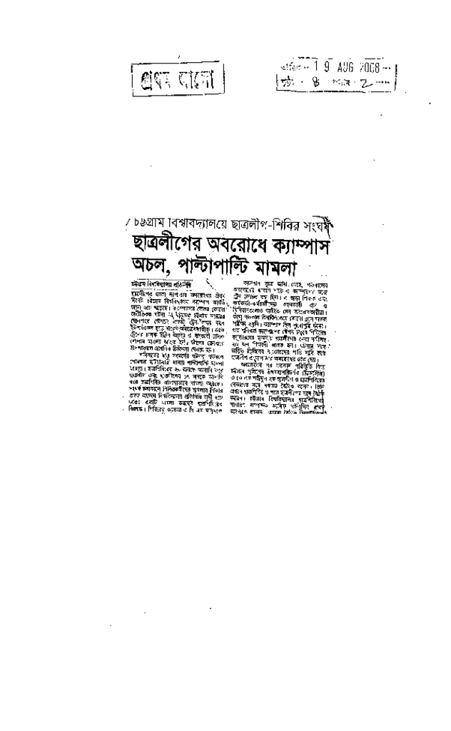 ছাত্রলীগের অবরোধে ক্যাম্পাস অচল, পাল্টাপাল্টি মামলা Published on Newspaper দৈনিক প্রথম আলো Category Student Politics Download