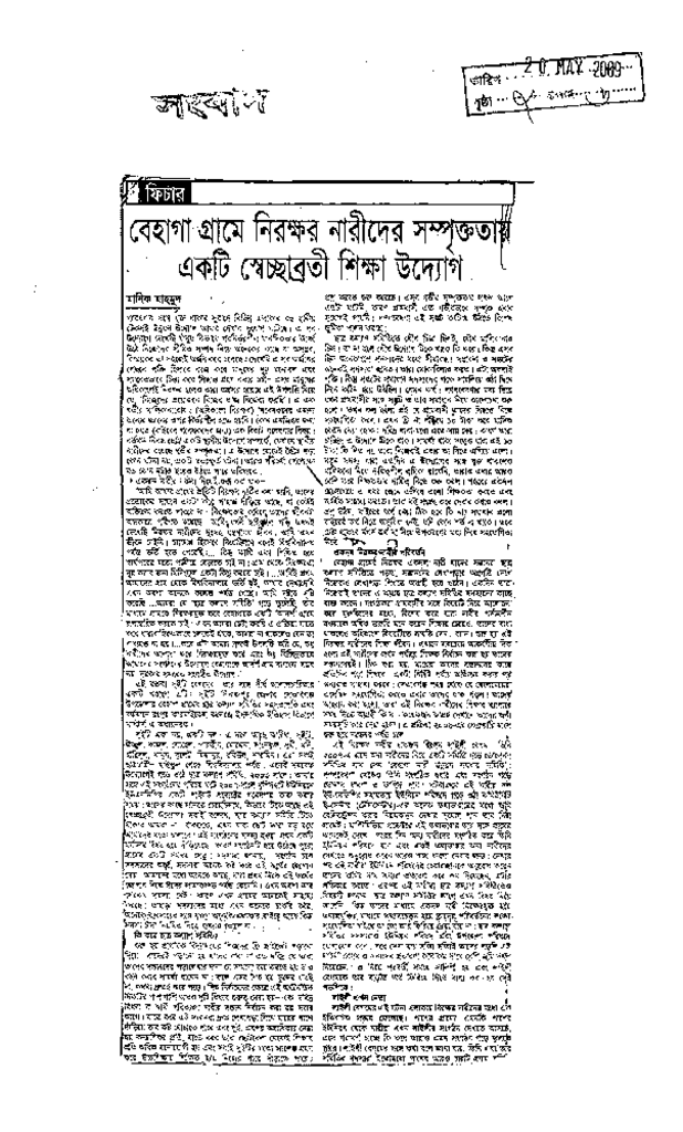 বেহাগা গ্রামে নিরক্ষর নারীদের সম্পৃক্ততায় একটি স্বেচ্ছাব্রতী শিক্ষা উদ্যোগ Published on Newspaper দৈনিক সংবাদ Category Women Education Download
