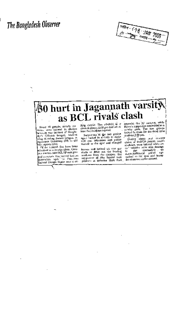 30 hurt in Jagannth University as BCL rivals clash Published on Newspaper The Bangladesh Observer Category Student Politics Download