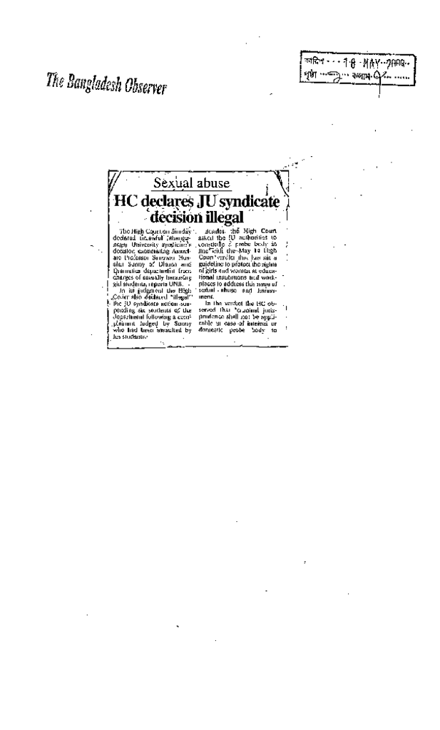 HC declares JU syndicate decision illegal Published on Newspaper The Bangladesh Observer Category Others Download