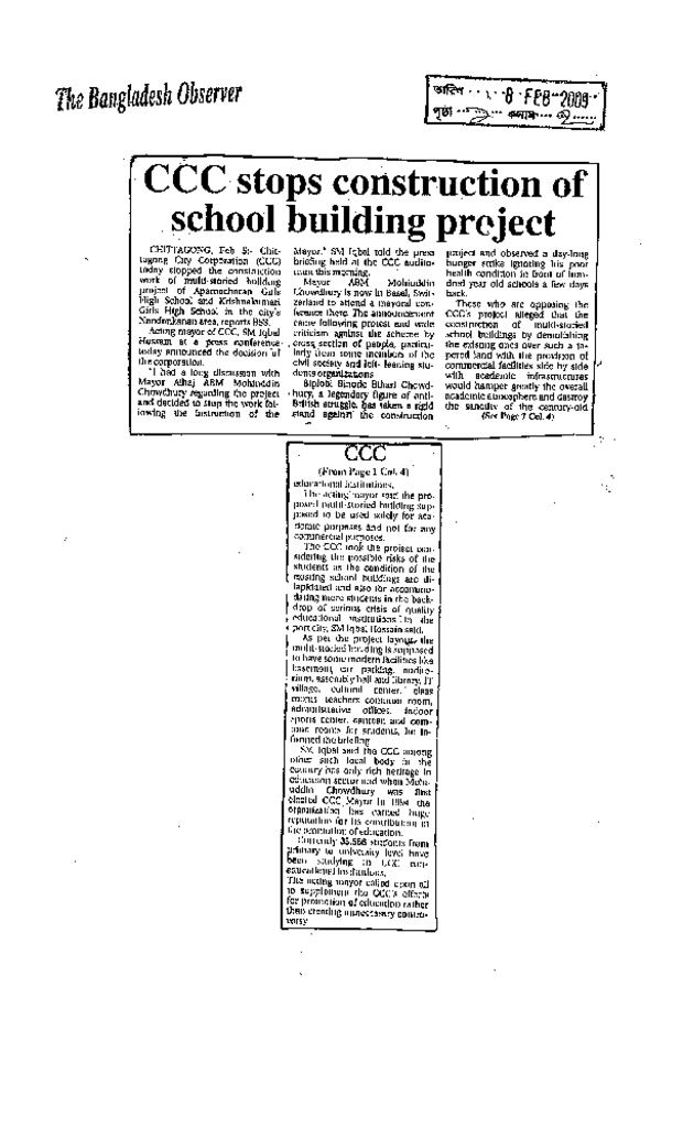 CCC stops construction of school building project Published on Newspaper The Bangladesh Observer Category General Education General Education Download