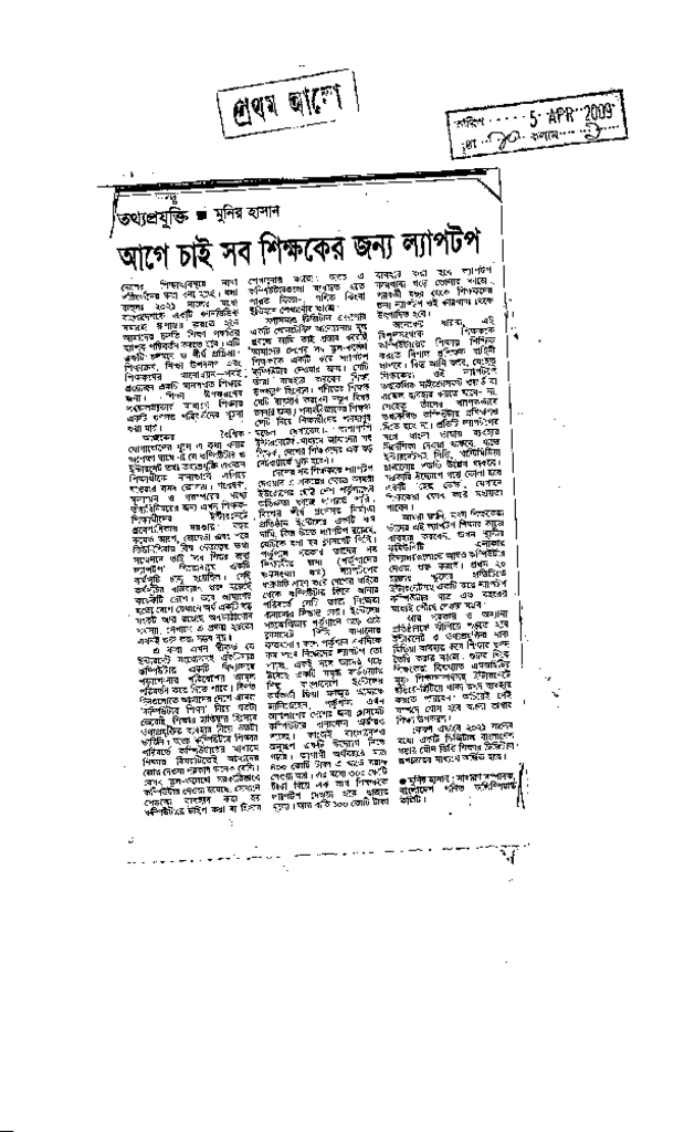 আগে চাই সব শিক্ষকের জন্য ল্যাপটপ Published on Newspaper দৈনিক প্রথম আলো Category ICT Education Download