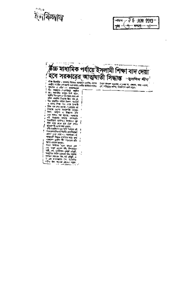 উচ্চ মাধ্যমিক পর্যায়ে ইসলামী শিক্ষা বাদ দোয়া হবে সরকারের আত্মঘাতী সিদ্ধান্ত Published on Newspaper দৈনিক ইনকিলাব Category Education Policy / Education Commission Download