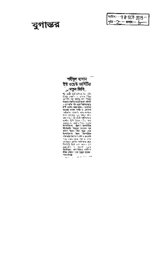 শহীদুল হাসান ইষ্টওয়েষ্ট ভার্সিটির নতুন ভিসি Published on Newspaper দৈনিক যুগান্তর Category General Education General Education Higher Education Private Download