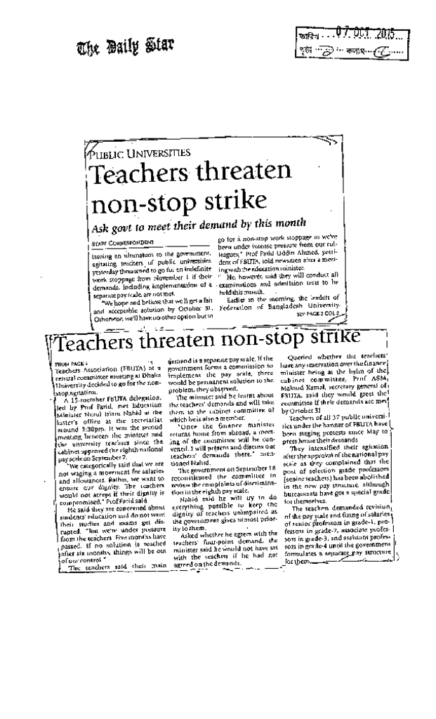 Public universities Teachers threaten non-stop strike Published on Newspaper The Daily Star Category Educational Ministry / Departments Division Secondary and Higher Education Education Ministry / Division / Directorate Download