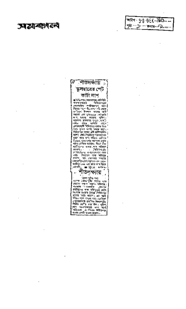 শীতলক্ষ্যায় স্কুলছাত্রের পেট কাটা লাশ