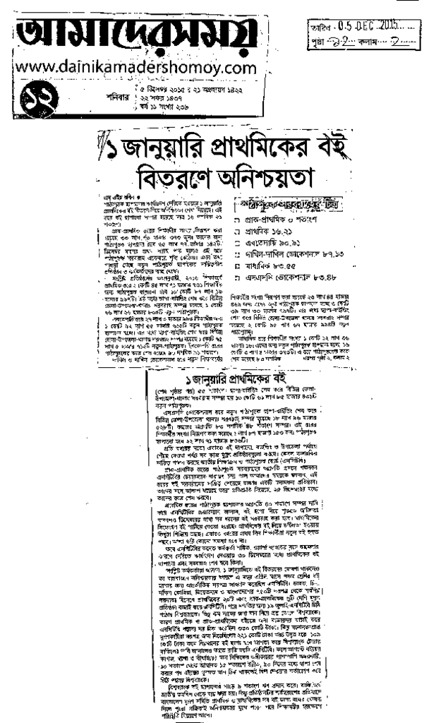১ জানুয়ারি প্রাথমিকের বই বিতরণে অনিশ্চয়তা