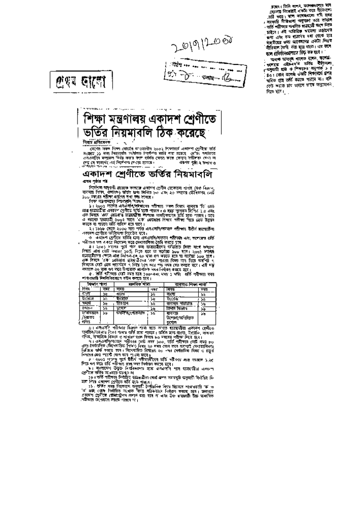 শিক্ষা মন্ত্রনালয় একাদম শেণীতে ভতির নিয়মাবলি ঠিক করেছে Published on Newspaper দৈনিক প্রথম আলো Category General Education General Education Download