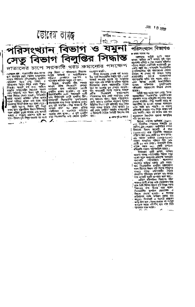 পরিসংখ্যান বিভাগ ও যমুনা সেতু বিভাগ বিলুপ্তির সিদ্ধান্ত Published on Newspaper দৈনিক ভোরের কাগজ Category Others Download