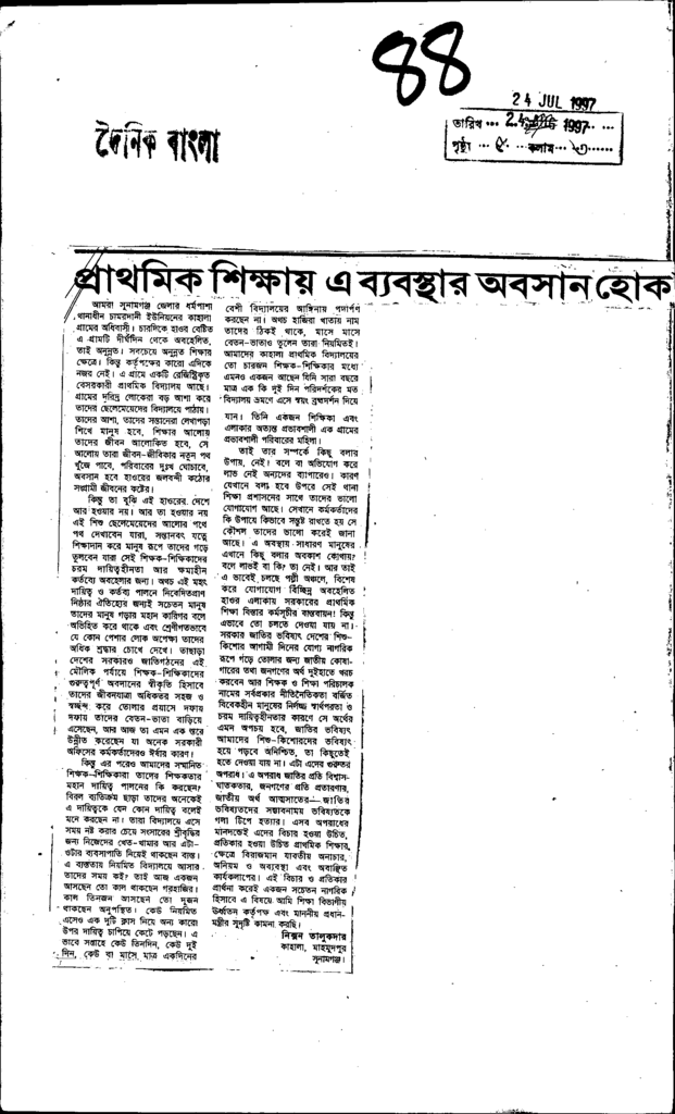 প্রাথমিক শিক্ষায় এ ব্যবস্থায় অবসান হোক