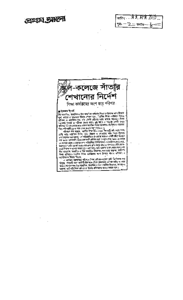 স্কুল-কলেজে সাঁতার শেখানোর নির্দেশ Published on Newspaper দৈনিক প্রথম আলো Category Sports and Culture Download