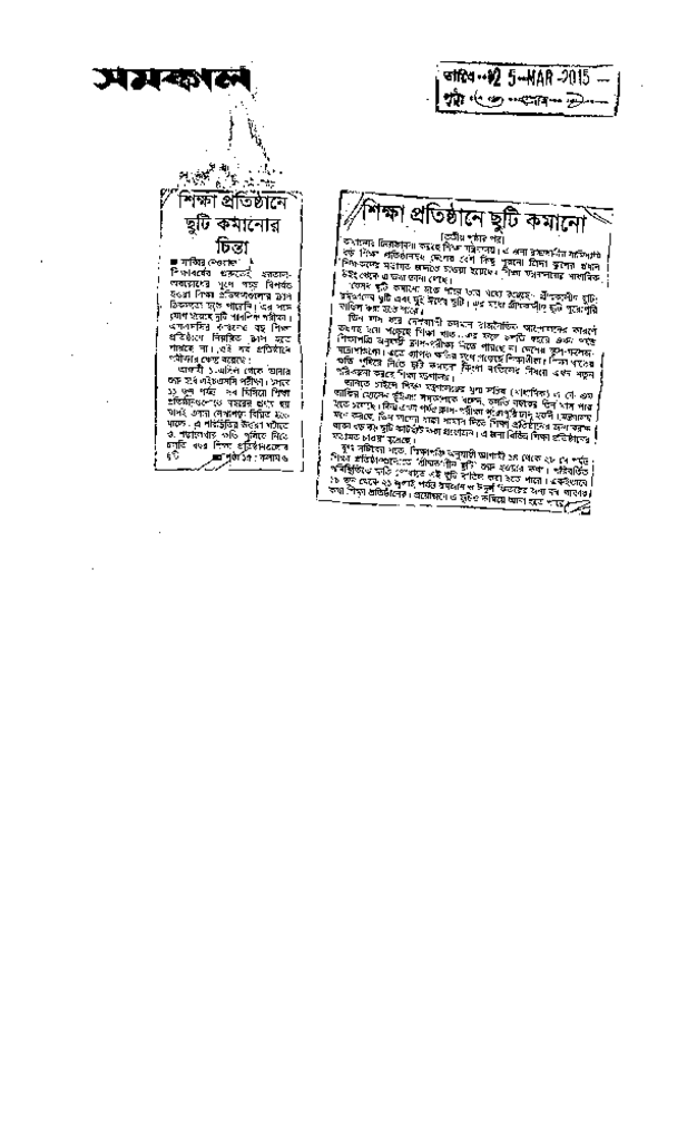 শিক্ষা প্রতিষ্ঠানে ছুটি কমানো Published on Newspaper দৈনিক সমকাল Category General Education General Education Download