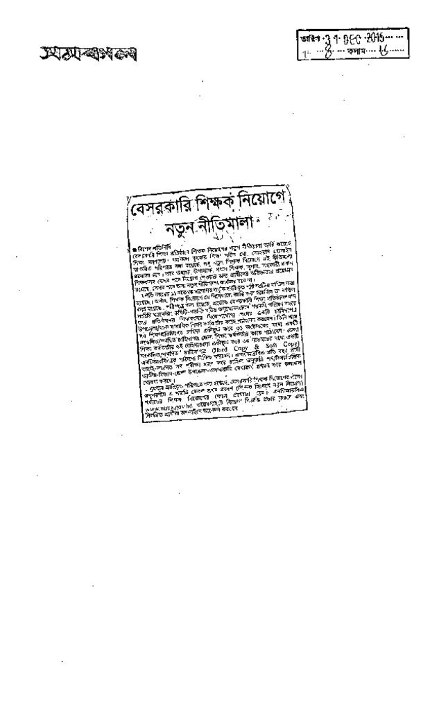 বেসরকারি শিক্ষক নিয়োগ নতুন নীতিমালা