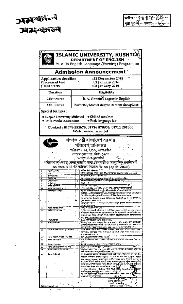 IU, KUSHTIA Admission Announcement Published on Newspaper দৈনিক সমকাল Category General Education General Education Higher Education Public Download