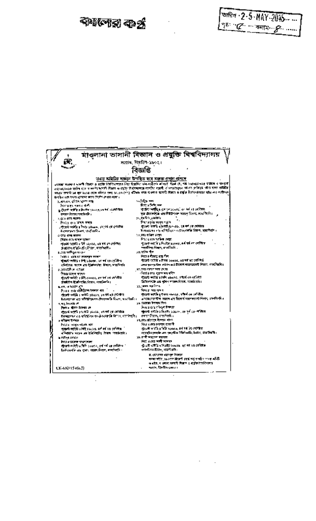 মাওলানা ভাসানী বিজ্ঞান ও প্রযুক্তি বিশ্ববিদ্যালয় Published on Newspaper দৈনিক কালের কন্ঠ Category General Education General Education Higher Education Public Download
