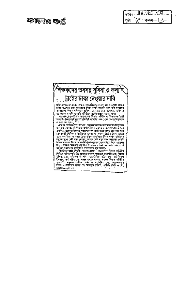 শিক্ষকদের অবসর সুবিধা ও কল্যাণ ট্রাস্টের টাকা দেওয়ার দাবি Published on Newspaper দৈনিক কালের কন্ঠ Category Others Download
