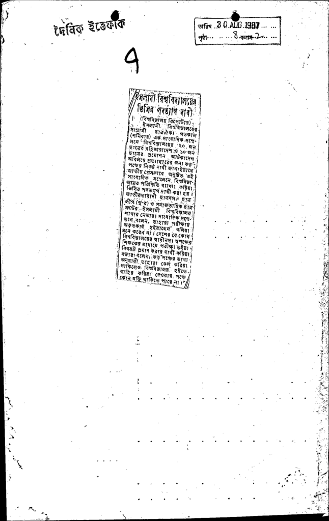 ইসলামী বিশ্ববিদ্যালয়ে ভিসির পদত্যাগ দাবী Published on Newspaper দৈনিক ইত্তেফাক Category General Education General Education Higher Education Public Download