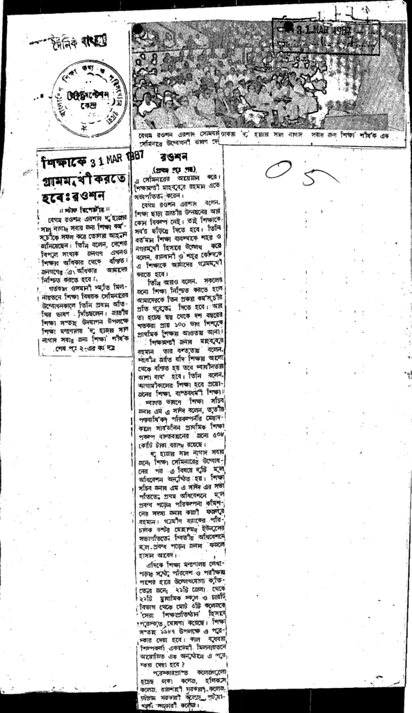 শিক্ষাকেগ্রামমুখীকরতেহবেঃরওশন Published on Newspaper দৈনিক বাংলা Category Personal Opinion / Discussion / Commentary Download