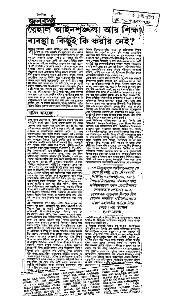 বেহাল আইনশৃঙ্খলা আর শিক্ষা ব্যবস্থা