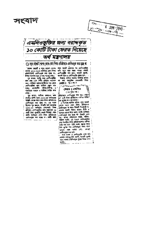 এমপিওভুক্তির জন্য বরাদ্দকৃত ১০ কোটি টাকা ফেরত নিয়েছে অর্থ মন্ত্রণালয় Published on Newspaper দৈনিক সংবাদ Category Others Download