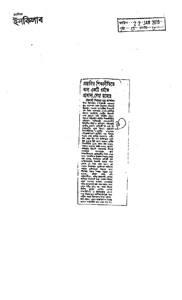 প্রস্তাবিত শিক্ষানীতিতে অন্য একটি ধর্মকে প্রাধান্য দেয়া হয়েছে