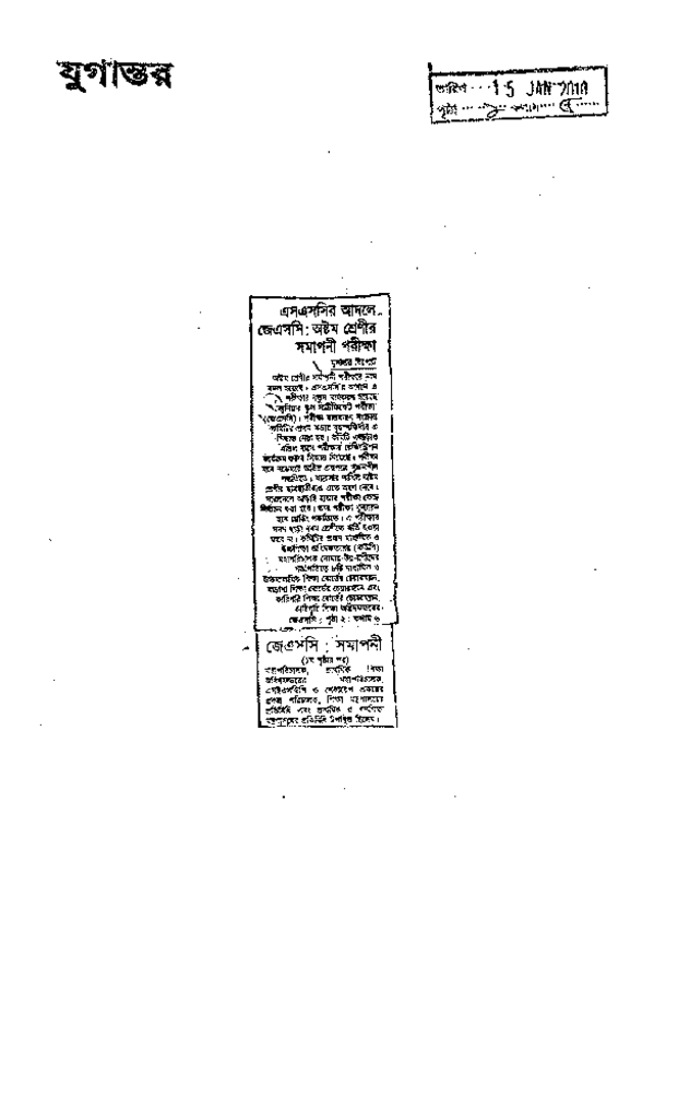 এসএসসির আদলে জেএসসি: অষ্টম শ্রেণীর সমাপনী পরীক্ষা Published on Newspaper দৈনিক যুগান্তর Category Educational Week Download