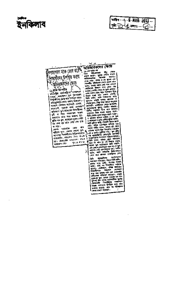 গনজাগরণ মঞ্চে জোর করে শিক্ষার্থীদের উপস্থিত করায় অভিভাকদের ক্ষোভ Published on Newspaper দৈনিক ইনকিলাব Category Student Politics Download