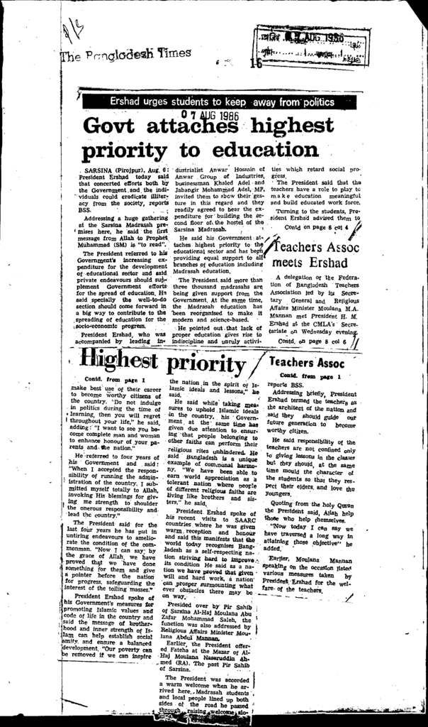 Govt attaches highest priority to educatiuon Published on Newspaper The Bangladesh Times Category Personal Opinion / Discussion / Commentary Personal Speech / Discussion / Comentary Secondary and Higher Secondary Education Download