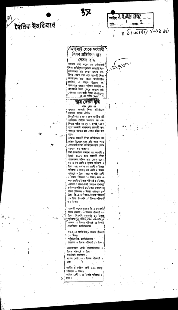 ১লা জুলাই থেকে সরকারী শিক্ষা প্রতিষ্ঠান ছাত্র বেতন বৃদ্ধি Published on Newspaper দৈনিক ইনকিলাব Category General Education Download