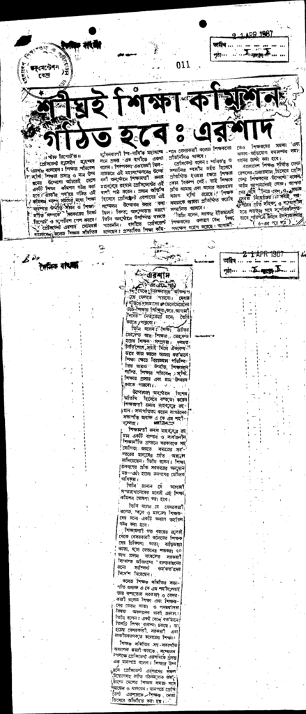 শীঘ্রই শিক্ষা কমিশন গঠিত হবেঃ এরশাদ Published on Newspaper দৈনিক বাংলা Category Personal Opinion / Discussion / Commentary Personal Speech / Discussion / Comentary Secondary and Higher Secondary Education Download