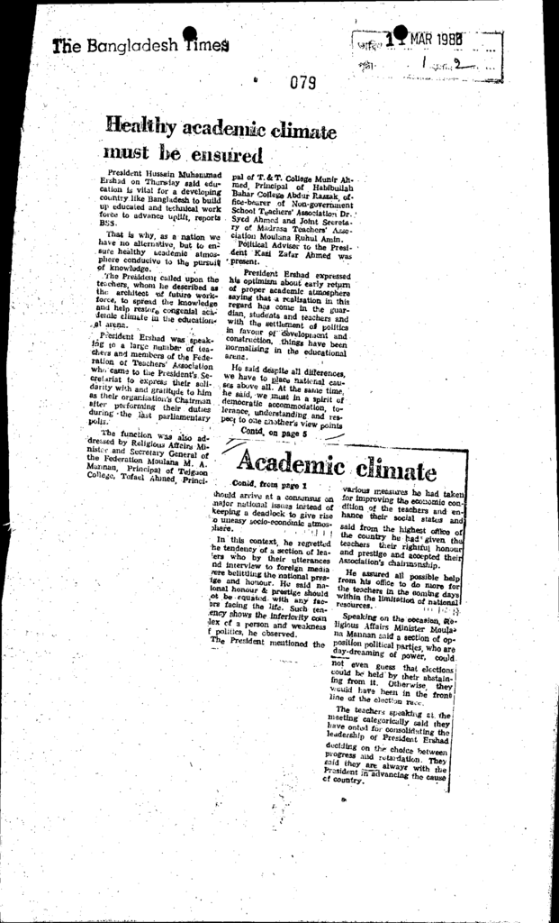 Henlthy academic climate must be ensured Published on Newspaper The Bangladesh Times Category Personal Opinion / Discussion / Commentary Personal Speech / Discussion / Comentary Secondary and Higher Secondary Education Download