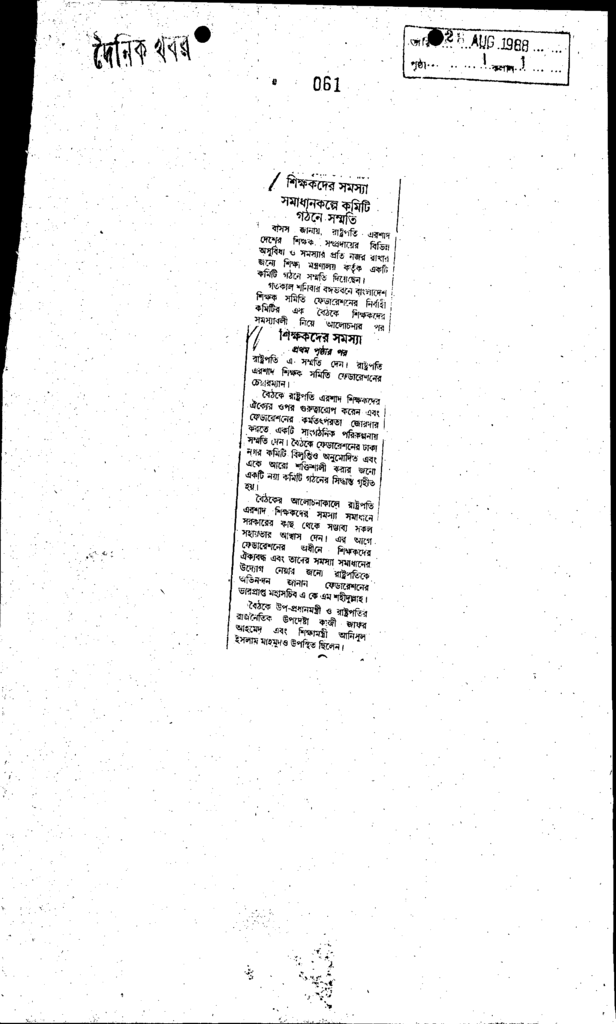 শিক্ষদের সমস্যা সমাধানকল্পে কমিটি গঠনে সম্মতি Published on Newspaper দৈনিক খবর Category Personal Opinion / Discussion / Commentary Personal Speech / Discussion / Comentary Secondary and Higher Secondary Education Download