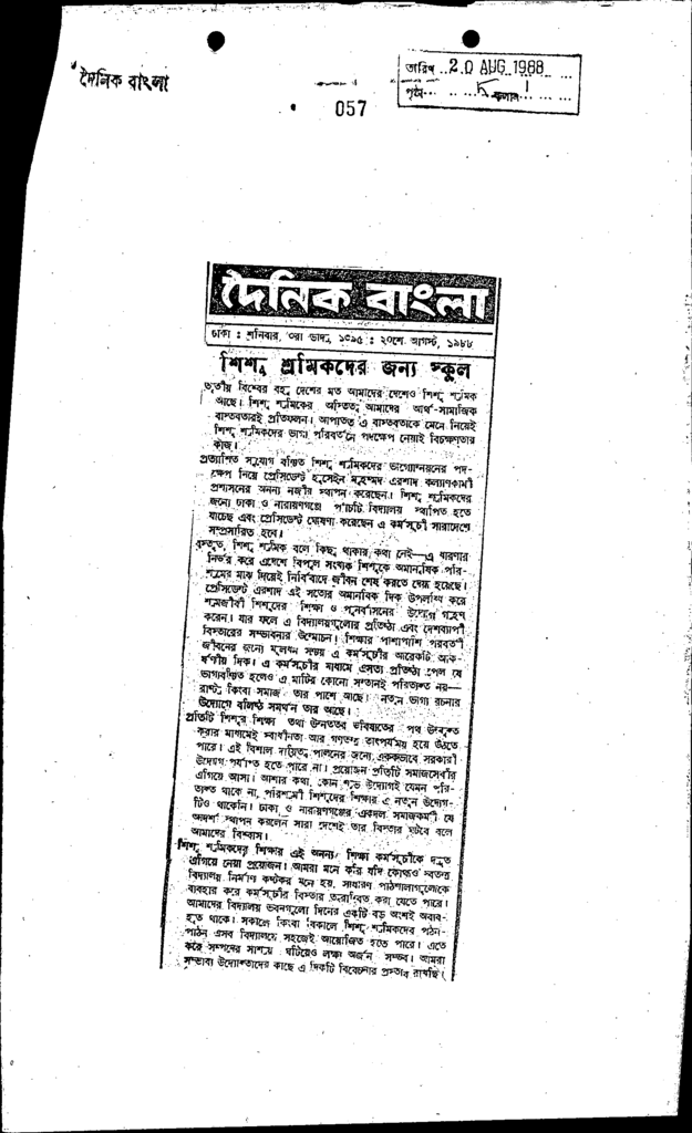 শিশু িশ্রমিকদের জন্য স্কুল Published on Newspaper দৈনিক বাংলা Category Personal Opinion / Discussion / Commentary Personal Speech / Discussion / Comentary Secondary and Higher Secondary Education Download