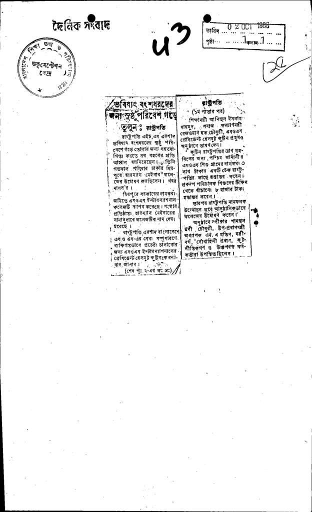 ভবিষ্যৎ বংশধরদের জন্য সুষ্টু পরিবেশ গড়ে Published on Newspaper দৈনিক সংবাদ Category Personal Opinion / Discussion / Commentary Personal Speech / Discussion / Comentary Secondary and Higher Secondary Education Download