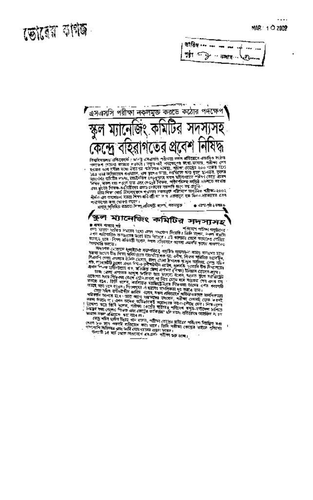 স্কুল ম্যানেজিং কমিটির সদস্যসহ কেন্দ্রে বহিরাগতের প্রবেশ নিষিদ্ধ Published on Newspaper দৈনিক ভোরের কাগজ Category Public Examination Public Examination SSC Download