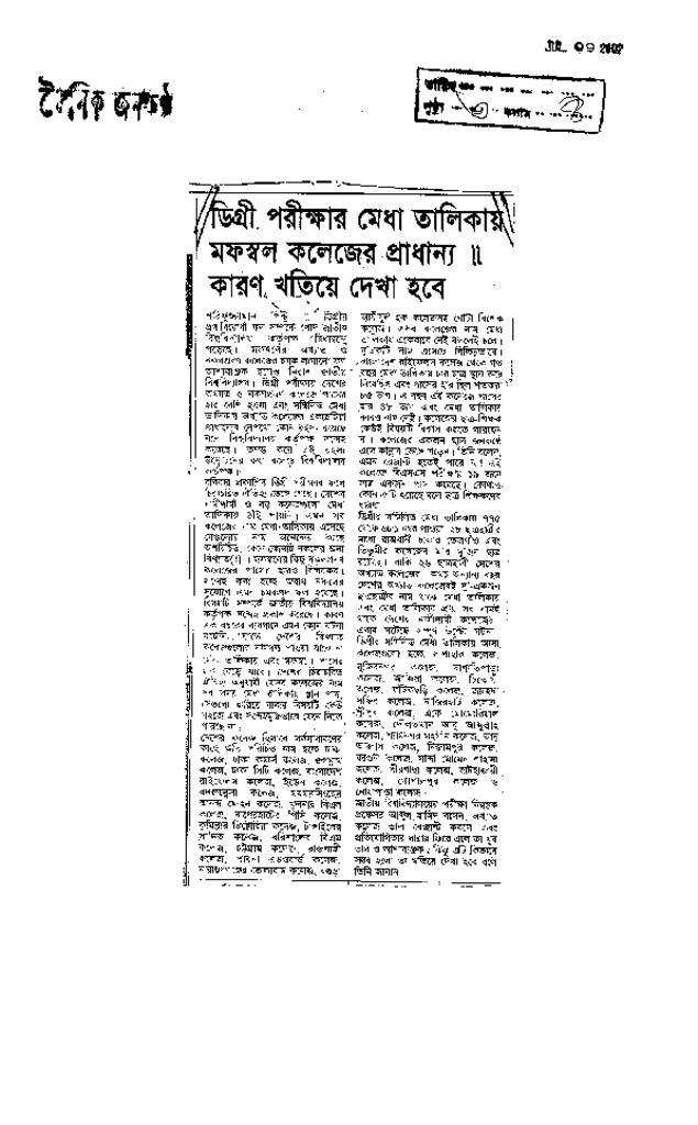 ডিগ্রী পরীক্ষার মেধা তালিকায় মফস্বল কলেজের প্রাধান্য Published on Newspaper দৈনিক জনকণ্ঠ Category Public Examination Public Examination Higher Education Download