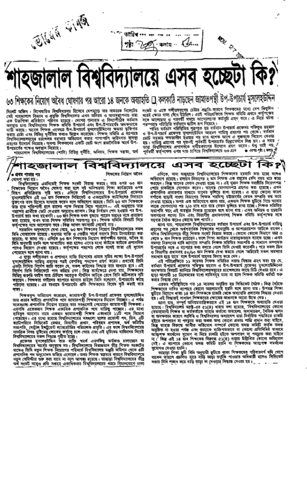 শাহজালাল বিশ্ববিদ্যালয়ে এসব হচ্ছেটা কি ? Published on Newspaper দৈনিক ভোরের কাগজ Category Personal Opinion / Discussion / Commentary Download