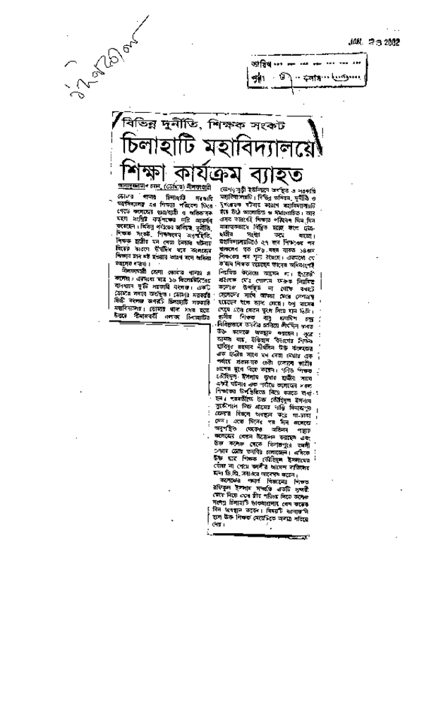 চিলাহাটি মহাবিদ্যালয়ে শিক্ষা কার্যক্রম ব্যাহত Published on Newspaper দৈনিক দিনকাল Category General Education General Education Download
