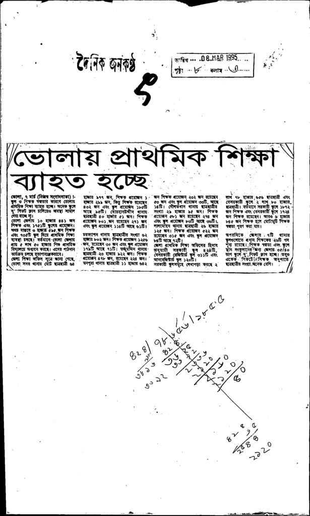 ভোলায় প্রাথমিক শিক্ষা ব্যাহত হচ্ছে Published on Newspaper দৈনিক জনকণ্ঠ Category General Education General Education Download